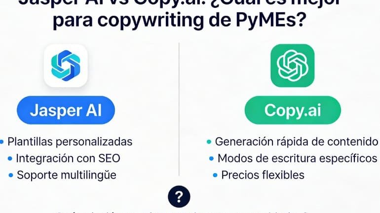Si tienes una PyME y quieres usar inteligencia artificial para crear textos de venta, probablemente te hayas encontrado con dos nombres: Jasper AI Copy.ai Ambas herramientas prometen ahorrar tiempo y mejorar tu marketing. Pero… ¿cuál es realmente mejor para una pequeña o mediana empresa? Vamos…