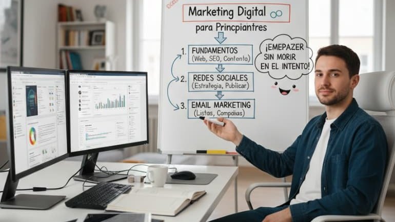 El marketing digital puede parecer abrumador cuando empiezas. SEO, redes sociales, email marketing, embudos, automatización, anuncios, branding, analítica… La cantidad de conceptos puede hacer que muchas personas se bloqueen antes de comenzar. El problema no es la dificultad. Es la falta de dirección. Muchos principiantes…